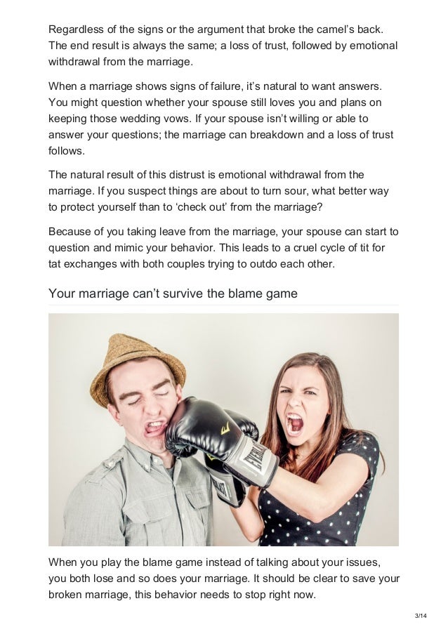 To learn more, read this some marriages are only broken but can still be fixed if the right measure is quickly taken.